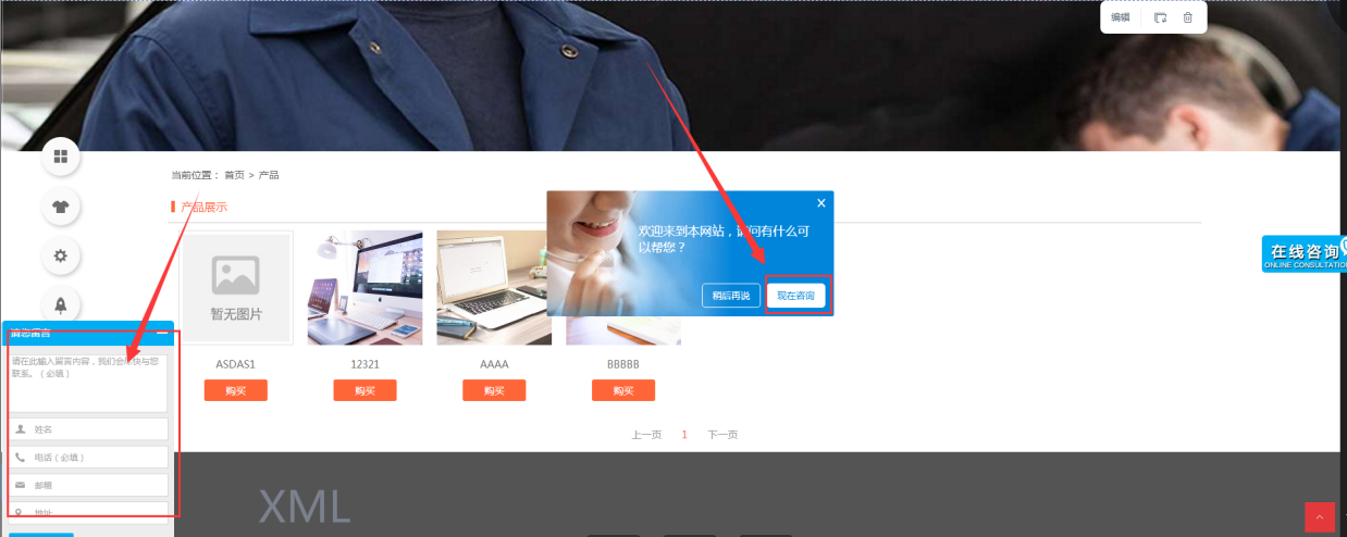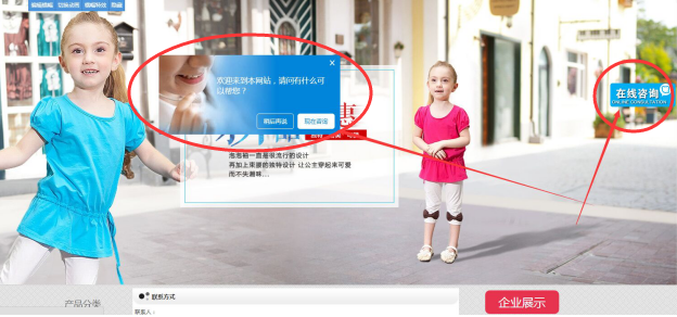 7.成功添加代码后,查看电脑版网站,网站会自动弹出咨询提示框,如下图所示: