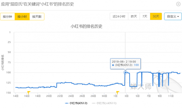 近日蝉大师监测到iOS12中App Store部分关键词搜索排名出现了心电图波动。
