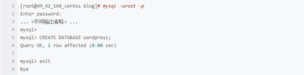 5.进入mysql环境,创建wordpress数据库并退出。