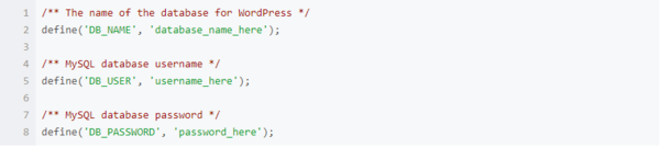 1.配置wordpress目录下的wp-config.php文件。需要修改的有以下几个参数: