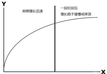 我们先来看看个人成长或者说资产增长的三种路径, 第一种是对数成长路径。 他们的收入增长曲线如下,开始增长会比较快,但是也很快会进入瓶颈期,虽然后面随着经验的增长他们的收入也会缓慢增长,但是顶部是可预知的,是一条基本平缓的曲线。