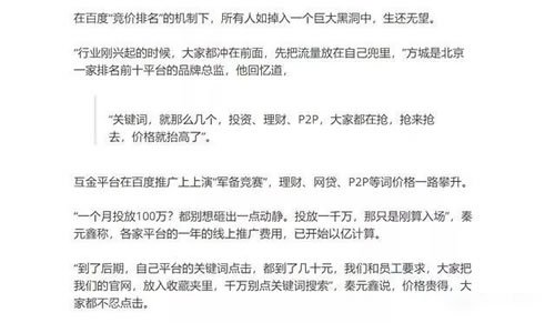 比如“投资、理财、P2P”等火热的关键词,你买了的话,用户搜索这些词,你的公司就排在最前面,点击后进入你公司的主页,有很大的几率会成为你们的客户!