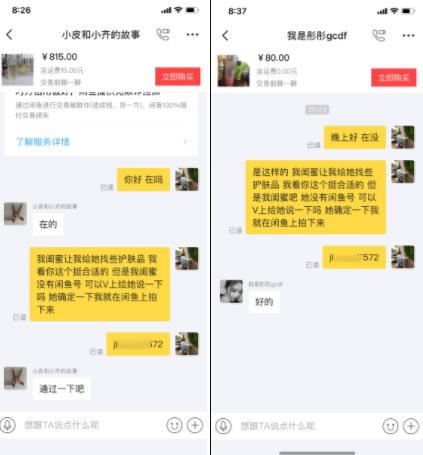 第4步:作为二手闲置物品交易平台,闲鱼上每天有海量真实个人卖家出售二手商品信息,咱们挨个私信,例如“闲鱼没绑卡,V信转给你可以么?”,“我闺蜜让我给她找一款XXX,我看你这个挺合适的,但是我闺蜜没有闲鱼号,可以V上给她说一下吗,她确定下来我就在闲鱼上拍下”,直接留V信号引流即可。因为个人卖家的目的是出售商品,所以理所当然加你微信。