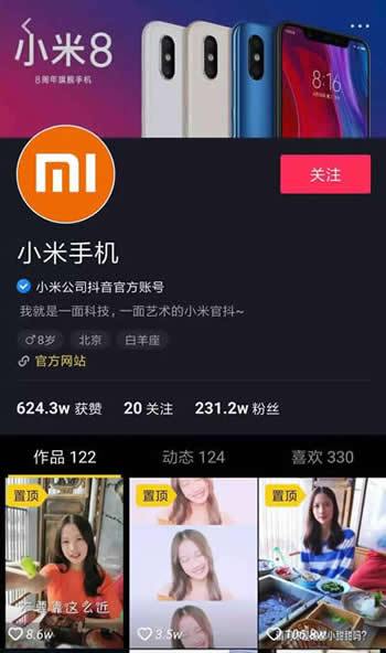 小米手机现在粉丝量已达到200w,它所做的内容就是特效+产品的功能展示,产品功能主要的展现形式就是拍照,运用手机本身的拍照功能教大家拍照技巧来展示这些产品性能。这种思路在抖音上的用户接受度是很高的,另外他们也可以做出更加潮流化的内容,而这些也正符合一些抖音内容的调性。