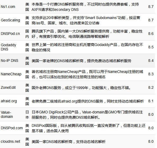 之前在做部落博客时曾经试用过不少的免费DNS服务,本篇就来整理一下国内外现在可用的免费DNS域名解析服务,从功能用途、稳定性、免费等方面对各大DNS域名作一下简单的综合评比,你可以根据自己的DNS域名解析需要来自由选择。