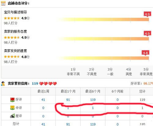 大家注意看那个中评,说实在的我打开信用看到卖家给我的那个中评时,我的心都在痛,人家给的评价是还行,既然还行为何给我中评呢?