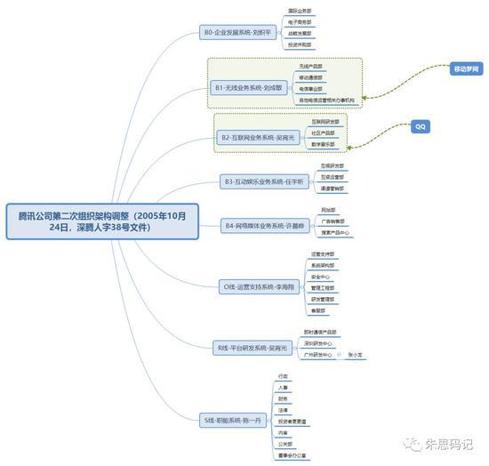 而纵观整个2005年,尽管腾讯财报显示的总收入增长24.7%,但实际在无线增值服务收入上同比下降了19.3%,最终为了增加收入还全资收购了无线增值服务提供商Joyman。也正是基于这种不利的局面,腾讯于2005年中旬开始将业务重心从无线增值业务转移向互联网增值业务。第一次架构调整:深腾人字38号文件,便是在这种局面下研究出来的破题方案。