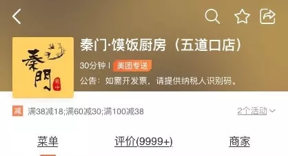 秦门外卖菜品多达50几种,价格从9.9肉夹馍到68大盘鸡不等