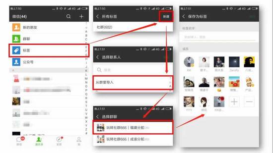 11、新进一个群,想知道群里有多少好友在,可点击通讯录-标签-新建-从群里导入-选择群聊,就可以了,方便知道应该说点啥不说点啥。