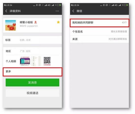 ②查找与好友的共同群组,查看好友的详细资料,点击【更多】,就可以看到和对方的共同群聊数量以及具体群组,这样就能轻松把群聊找回来了。