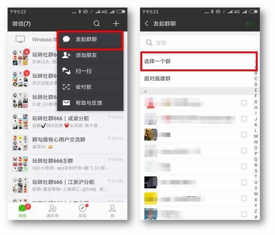 4、每个微信号建群有上限,先用拉人的方式建群,上限后可选择面对面建群