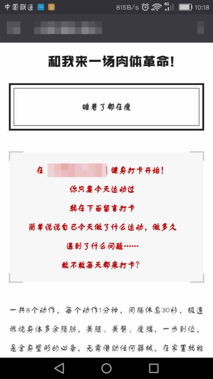如果你真的有健身计划而且还没有行动,每天被被人这样督促是不是真的会每天过来打卡,也许不是为了看文章只为了留下一个印记,当你坚持了一个月三个月,返回来看这段日子,是不是自身也会很有成就感呢?