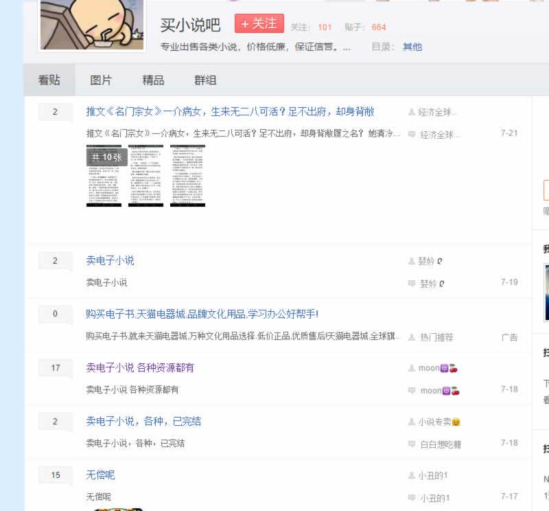 1、小说类的贴吧里面 发一个诱饵的帖子