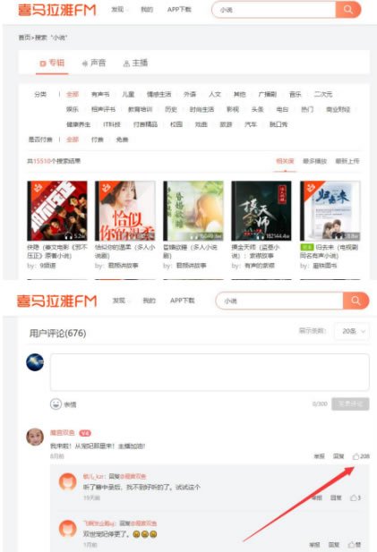 6、喜马拉雅评论引流选择点赞量大的评论,这样可以展示在最上面。