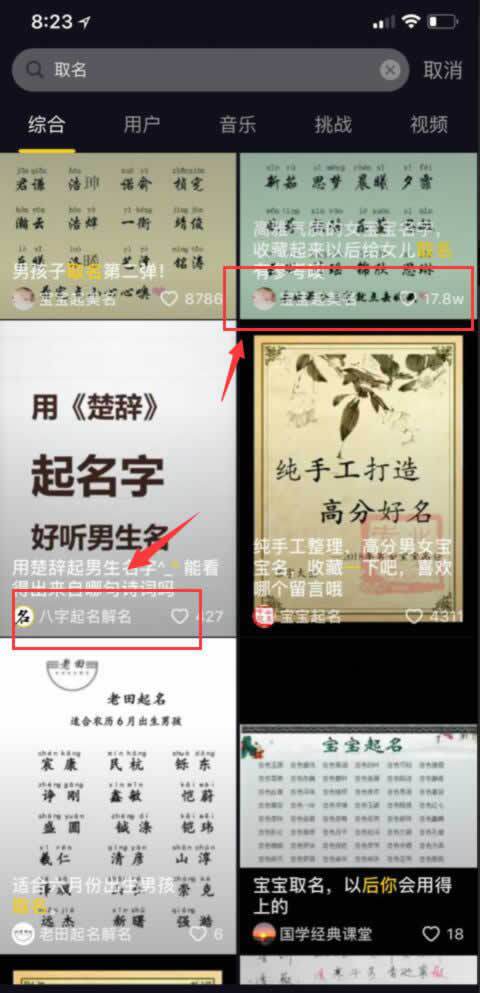 名字一定要突出取名或者宝宝取名,这样别人从抖音搜索取名你也才能获得截留的效果。