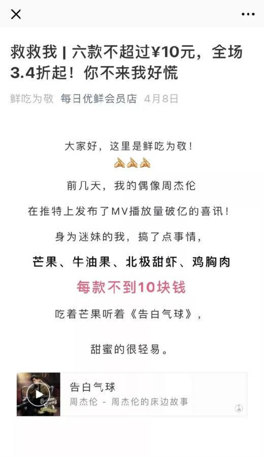 你平常熟悉的电商品牌,比如每日优鲜、爱鲜蜂、沱沱工社等等,基本上发的都是硬广。