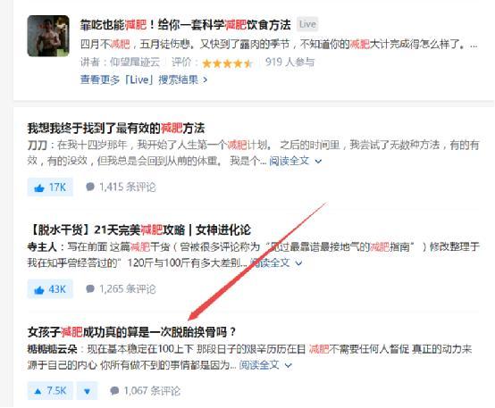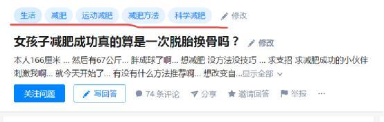 五个话题,四个包含“减肥”这个关键词,足以说明这个问题对应粉丝的精准性,推荐的一般都是迫切需要“减肥”的人群。
