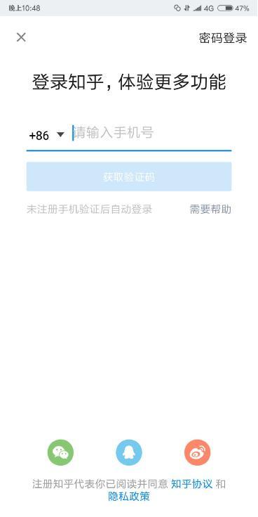 知乎账号一般是四种登陆途径:手机、QQ、微信、微博。