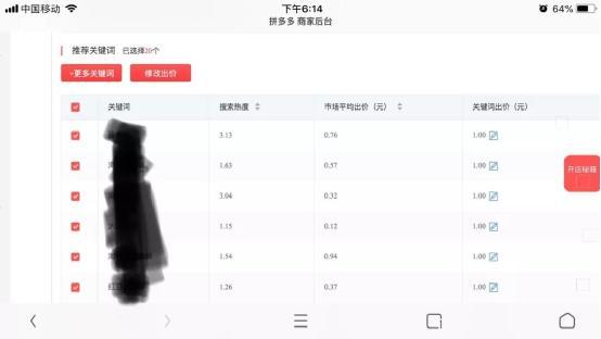 开直通车可以看到销量、点击、转化率,然后就可以给关键词出价,这些会影响产品的排名。如果你跟同行在销量、点击和转化率方面的数据一样的话,谁的出价高,谁的排名就在前面。但是,如果别人的点击和转化率比你好,别人的排名就会在你的前面。所以说,点击量和转化率这两个点是非常重要的。