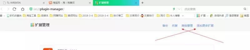 点击之后,出现下图中的备份、恢复、高级管理、添加更多扩展,点击“添加更多扩展”:
