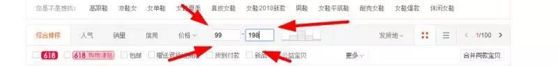 那么,在价格区间就要把利润挤出来,定一个大概的价格在一百以上,如设置98-198搜索: