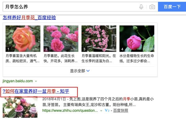 比如,关键词“月季种植”就有知乎,如何种植欧洲月季信息的排名。
