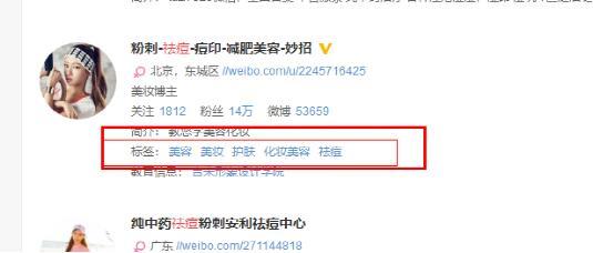 大家可以看一下这个栏目,像第一个那个他的微信写在那个职业信息里面,你这边做的什么产品的话,尽可能把功能想全,然后把标题给设置好。设置好后,还有一个他的标签。标签一定要有相关性,跟你的产品和行业有相关性,可以去设置一下,最好是用电脑去设置。
