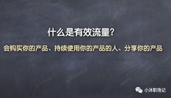 何谓有效流量?要理解这个词,可以从三句话去入手,即清楚的说出一个产品是为了谁,去解决他们什么问题,以及怎么解决的。一个产品生产出来是为了卖出去从而才能获得利益,那些去买你产品的人、持续使用你的产品的人以及分享你的产品,才会给予你真正的利益,才会值得你去为这个产品花心思,花精力,花金钱。相反,那些对你产品没兴趣,不会购买的人,他们的点击是无效的。但是现如今很多公司并没有搞清他们最终的营销目标,一味的去追求转发数,浏览量,这完全就是一种自嗨式的营销思维。