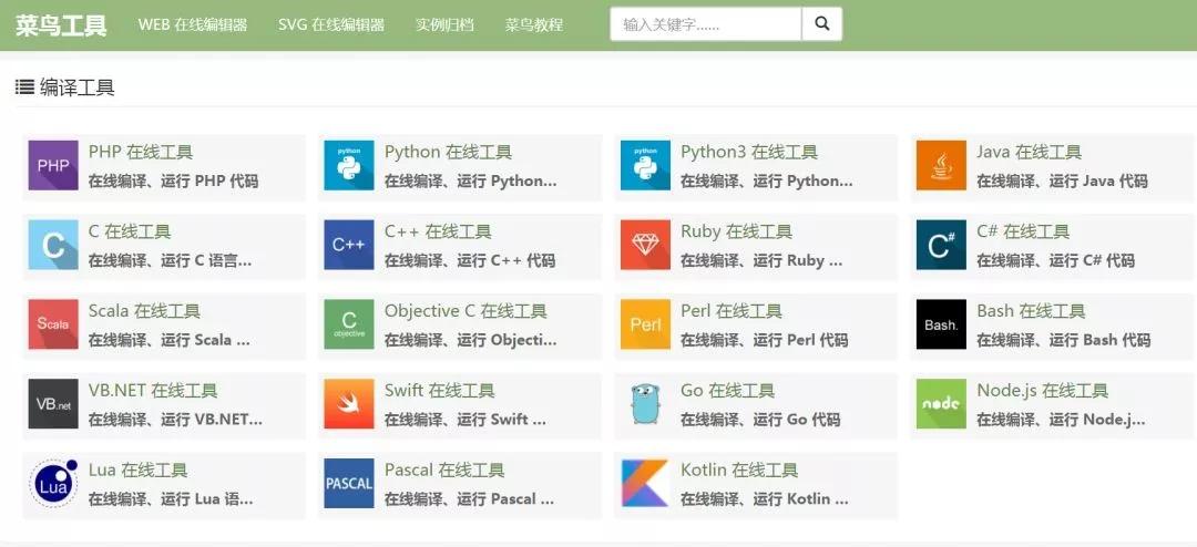 各种语言的在线编辑器,可以在网页上运行代码,支持的语言非常全面。