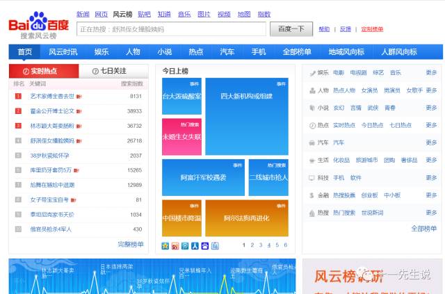 百度搜索风云榜聚集了大量的热点新闻以及关键词。