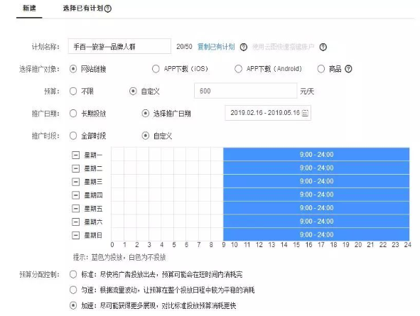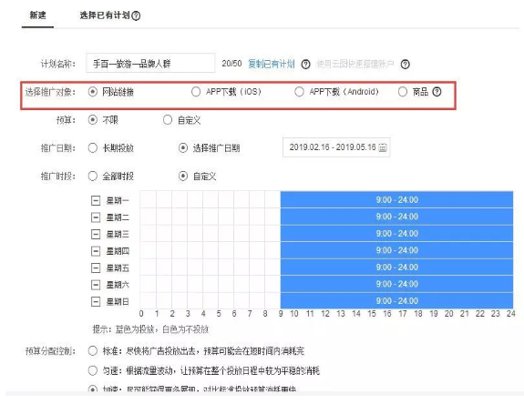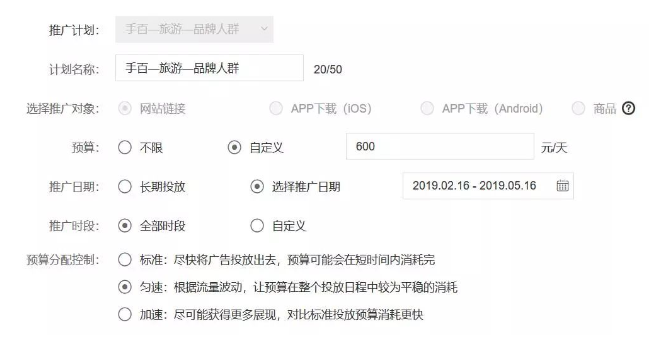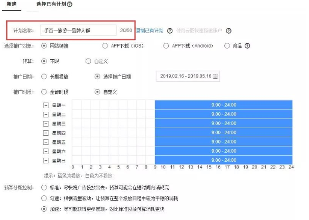 如图所示,它包含了一个计划推广的预算、日期、时段等基础信息。