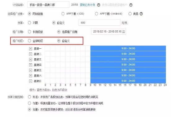 如下图所示,选择你所需要投放的时段即可。那像这个,就需要你在前期做好充足的项目和竞争对手分析。