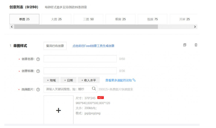 底部就是相关创意信息,小编便不再做过多讲解。大家根据上述信息,进行填写即可。