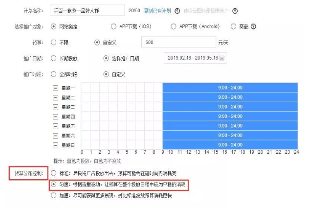 一般刚开始投放,数据不齐全或者不能实时盯着账户建议选择匀速;后期具备一定的数据或可以实时盯着账户时可以选择加速。