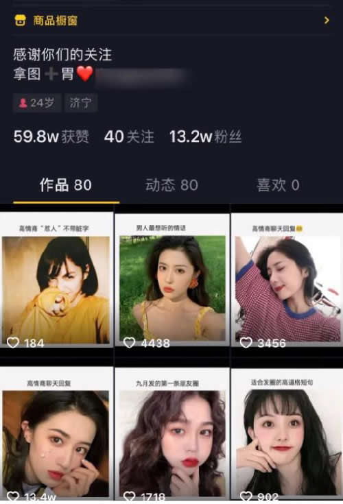 上图所示,用这些美女图做引流,可以用来引男粉,通过卖男性产品去变现,当然不排除一些追粉爱好者,他们很喜欢收集各种明星图,所以通过这种方式可以引到很多粉丝,同时后续也能实现变现。