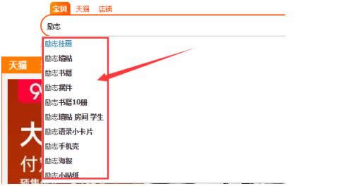 笔者通过淘宝搜索,搜索励志,下拉可以看到关于励志的相关产品,同样对于关注励志这块的粉丝也会购买这类产品,所以同样可以去做这类产品的变现。