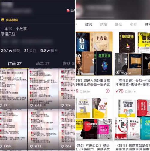 在抖音上经常能刷到这类账号,推荐的都是励志类的书,关于:励志,情商,交际,口才等相关书籍。每一本书都有值得读者去看的精华部分,最重要的是本身励志书也不贵,也就几十块钱一套,还是有很多人会去购买。