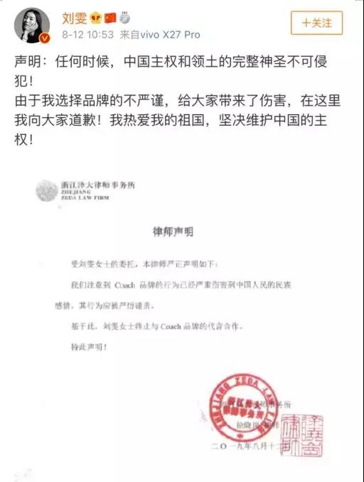 同样,coach代言人刘雯也于8月12日发布微博称,任何时候,中国主权和领土完整神圣不可侵犯,并宣布终止与Coach品牌的合作。并且小编发现,Coach品牌国外官网已经无法访问。
