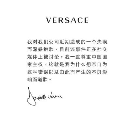 随后范思哲的品牌创意总监Donatella Versace在品牌官方及个人Instagram、Facebook、Twitter上发布道歉声明。