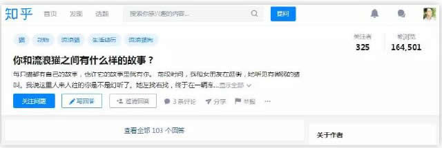 然后又去知乎上征稿,日更一篇流浪猫的故事或者跟猫有关的科普,到现在2019年偶尔还会有人投稿过来。