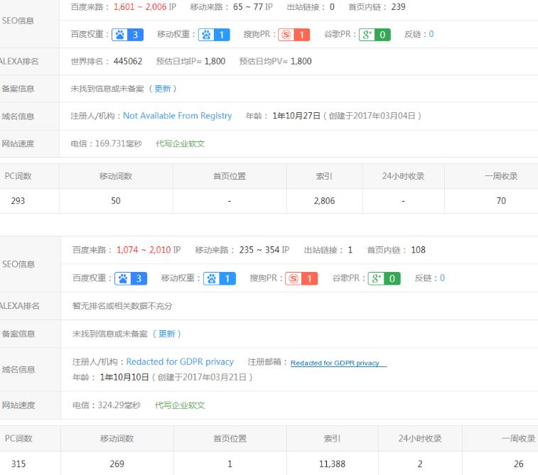 而且这位朋友手法成熟,快排站与主站做的行业和关键词都一致,一旦跳转,主站的流量来源都会是行业关键词,想法很好。