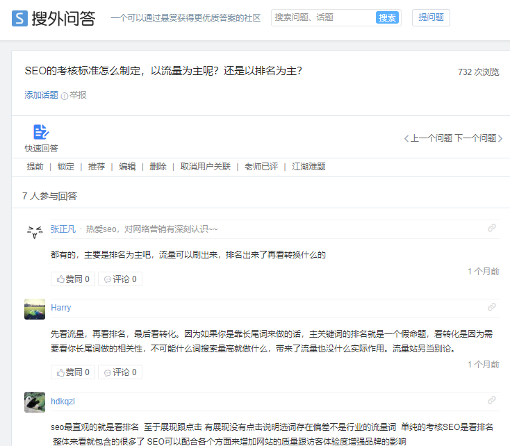 这个问题在搜外问答上也经常会有SEOer进行发帖提问: