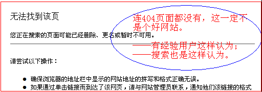 连这个细节都没有做好的网站,一定不值得信任。不管有心无心,对于没有404页面的网站,用户都会质疑的,搜索引擎更是如此。