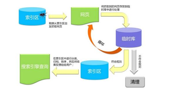 简单的说就是通过各自编写的程序,百度的叫百度蜘蛛,首先是来到你的网站抓取你的网站内容、然后拿回去筛选、建立索引存储起来、进行排序、当用户搜索某个关键词的时候就显示出来。