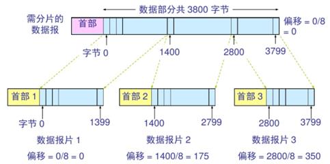 - 片偏移:较长的分组在分片后,某片在原分组中的相对位置,单位为8字节