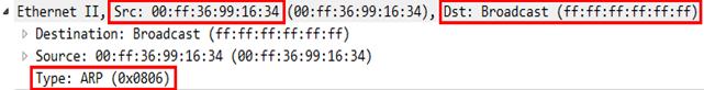 - 协议类型:网络层协议类型,IP协议为0x0800
