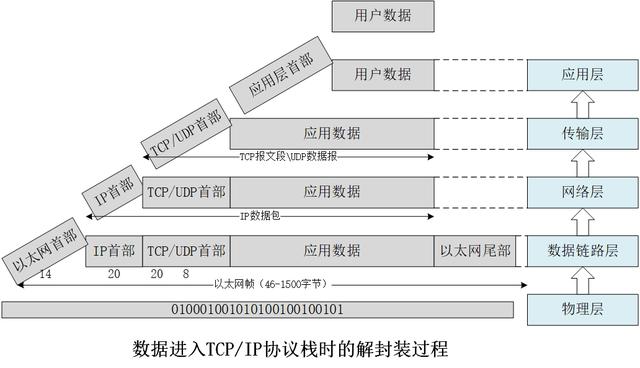 数据进入TCP/IP协议栈时的解封装过程如下: