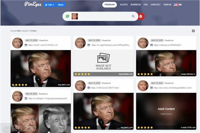 先说结果:PimEyes对名人、明星照片的识别精确度比较高,同时也能搜索到普通人(仅限国外)的照片。不过,能识别出国内普通人的几率就不高了。