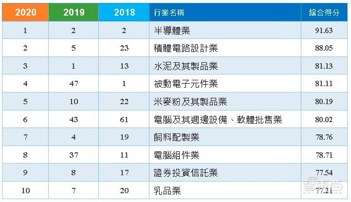 半导体产业已经连续 8 年进入中国台湾地区产业经营绩效榜单前十,并且曾在 2013-2016 年连续 4 年保持第一,2018-2019 年暂居第二后,2020 年再次登上榜首。