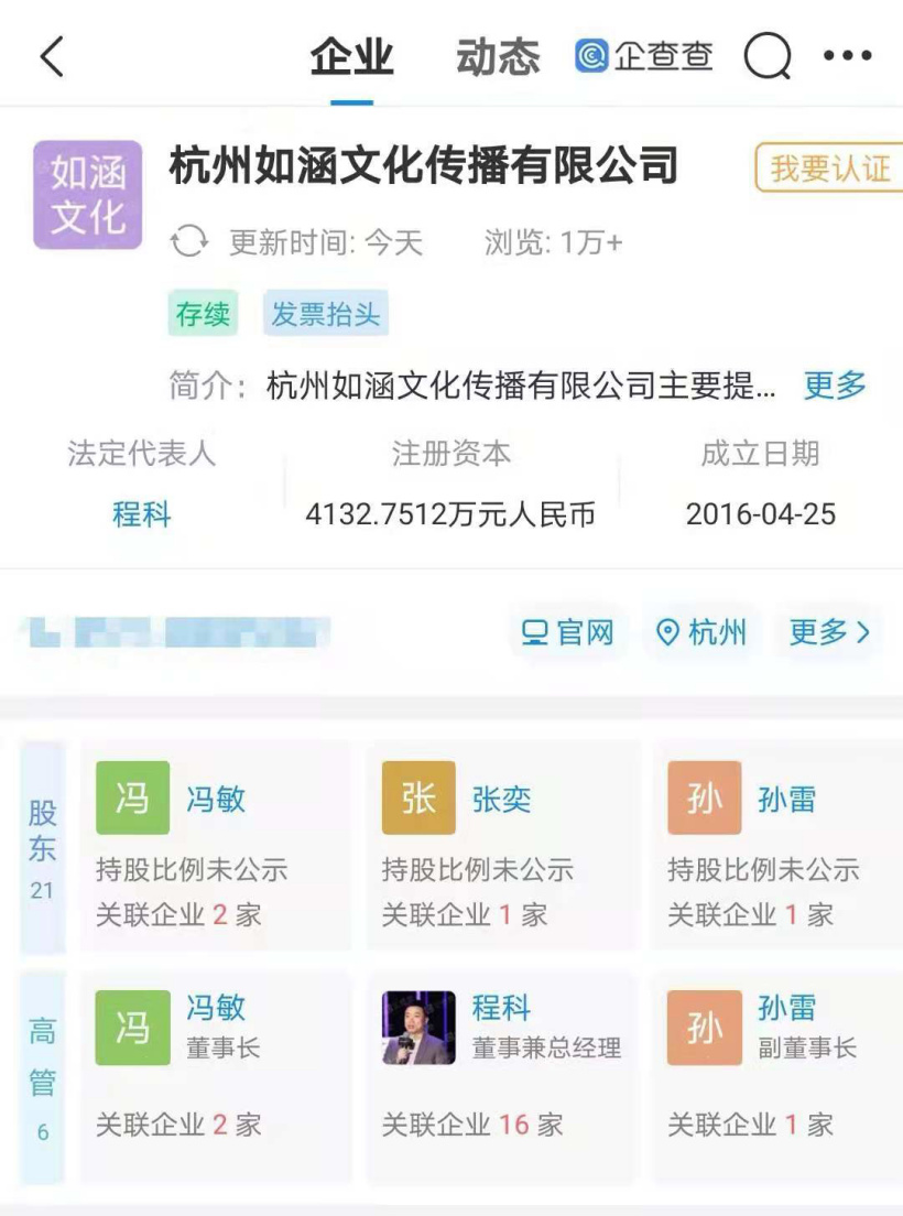 8 日消息 信息显示,近日,杭州如涵文化传播有限公司(简称“如涵文化”)发生工商变更,新增阿里巴巴(中国)网络技术有限公司、B 站关联公司上海幻电信息科技有限公司等多名股东,同时公司注册资本由 50 万元人民币增加至 4132.75 万元人民币。